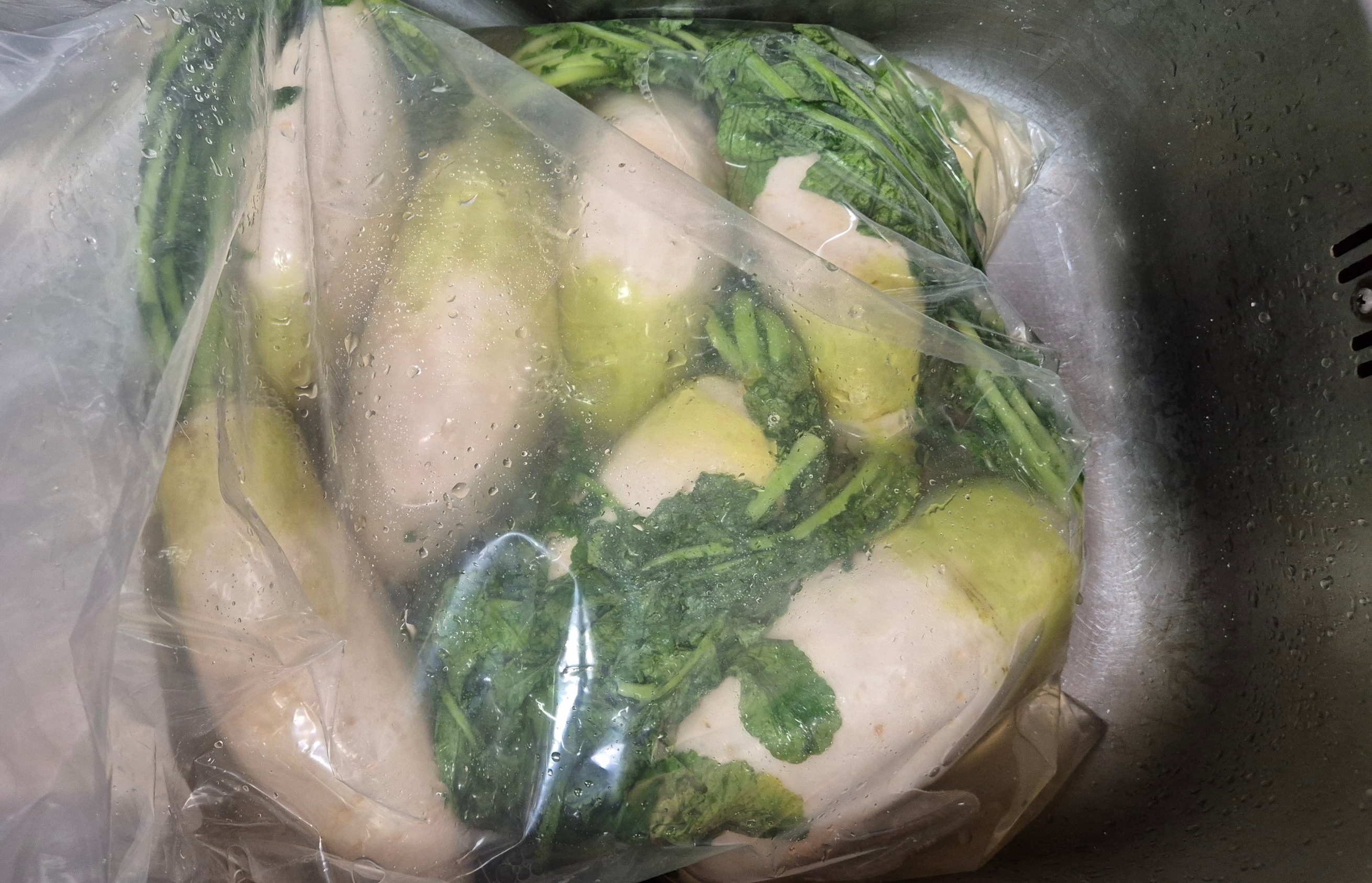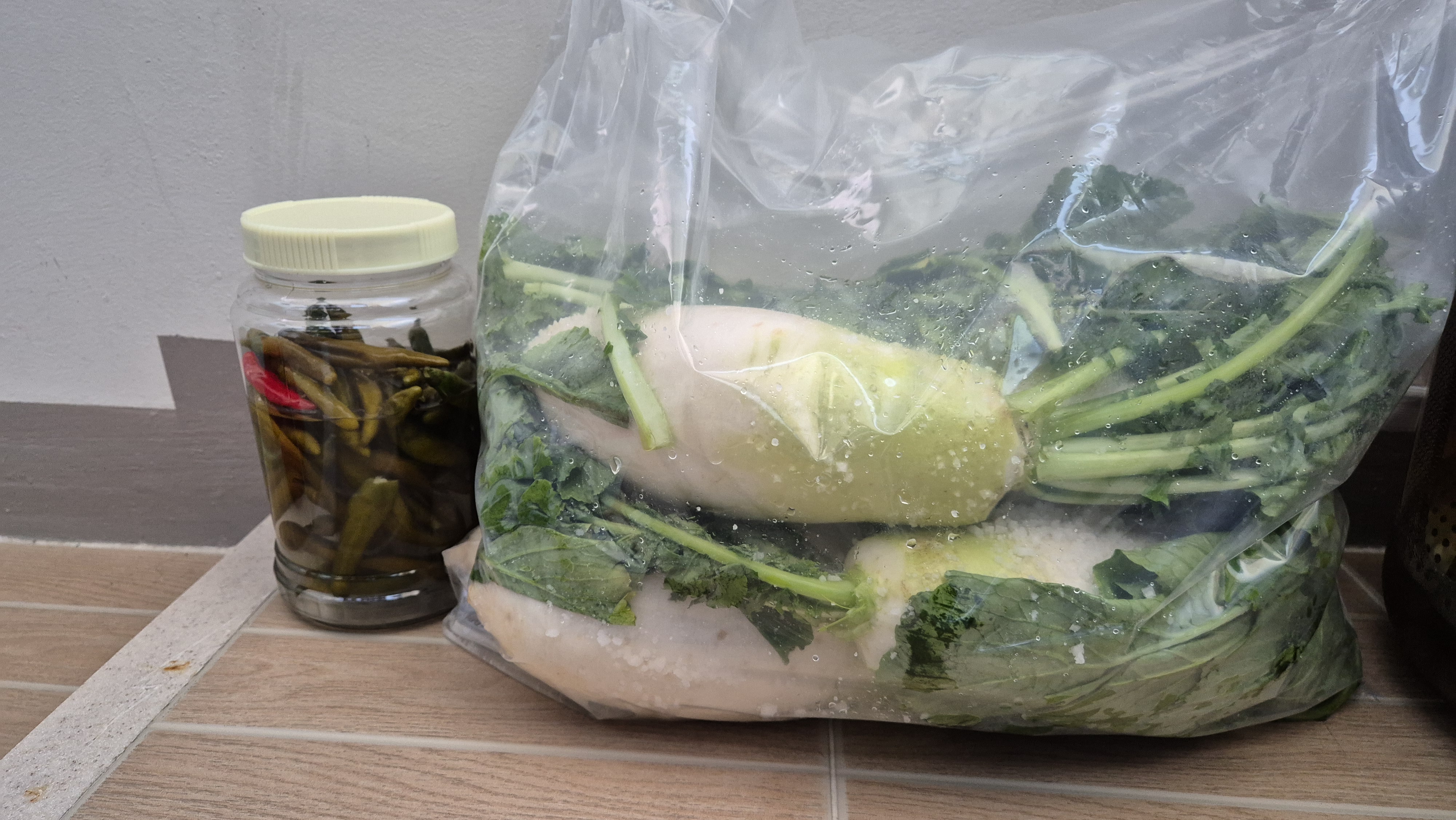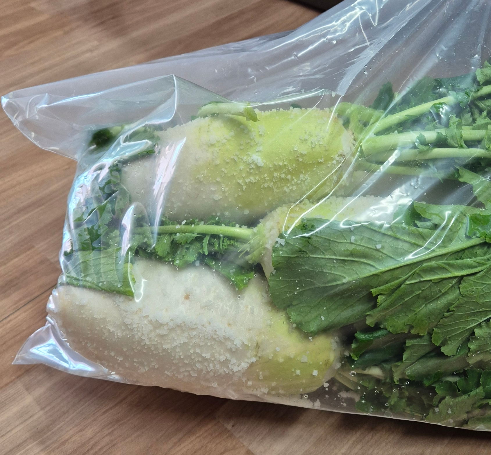 봉지에 넣고 소금에 절인 무는